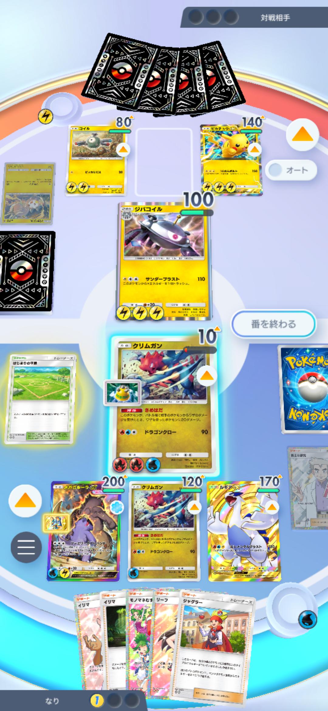 ナツメ使っても、逃げエネ0がバトル場にきて、次ターン盾復帰してるっていう